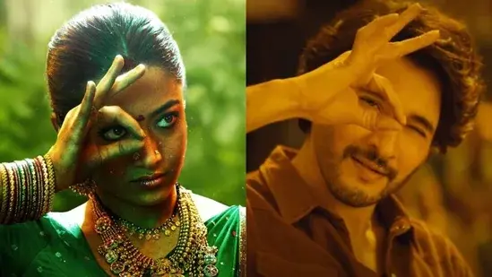 Pushpa makers release new still of Rashmika on her birthday, April 5, leading to comparisons with Mahesh Babu's Guntur Kaaram look.