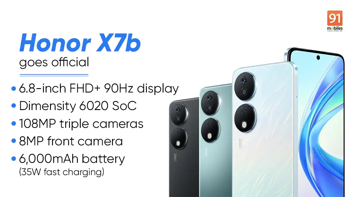 Honor X7b 5G officially announced with upgraded specs, including 108MP camera and 35W fast charging.